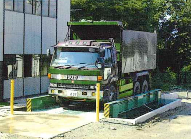 持ち込まれたがれき類を計量する。
